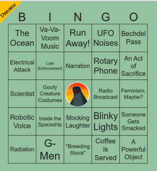 Hey, #Monsterdon! It's almost time for Frankenstein Meets the Space Monster. 🍿 Tonight's bingo card has 49 possible tropes from 1960's monster movies. 👉 https://bingobaker.com/#686ab7c56e2548f7